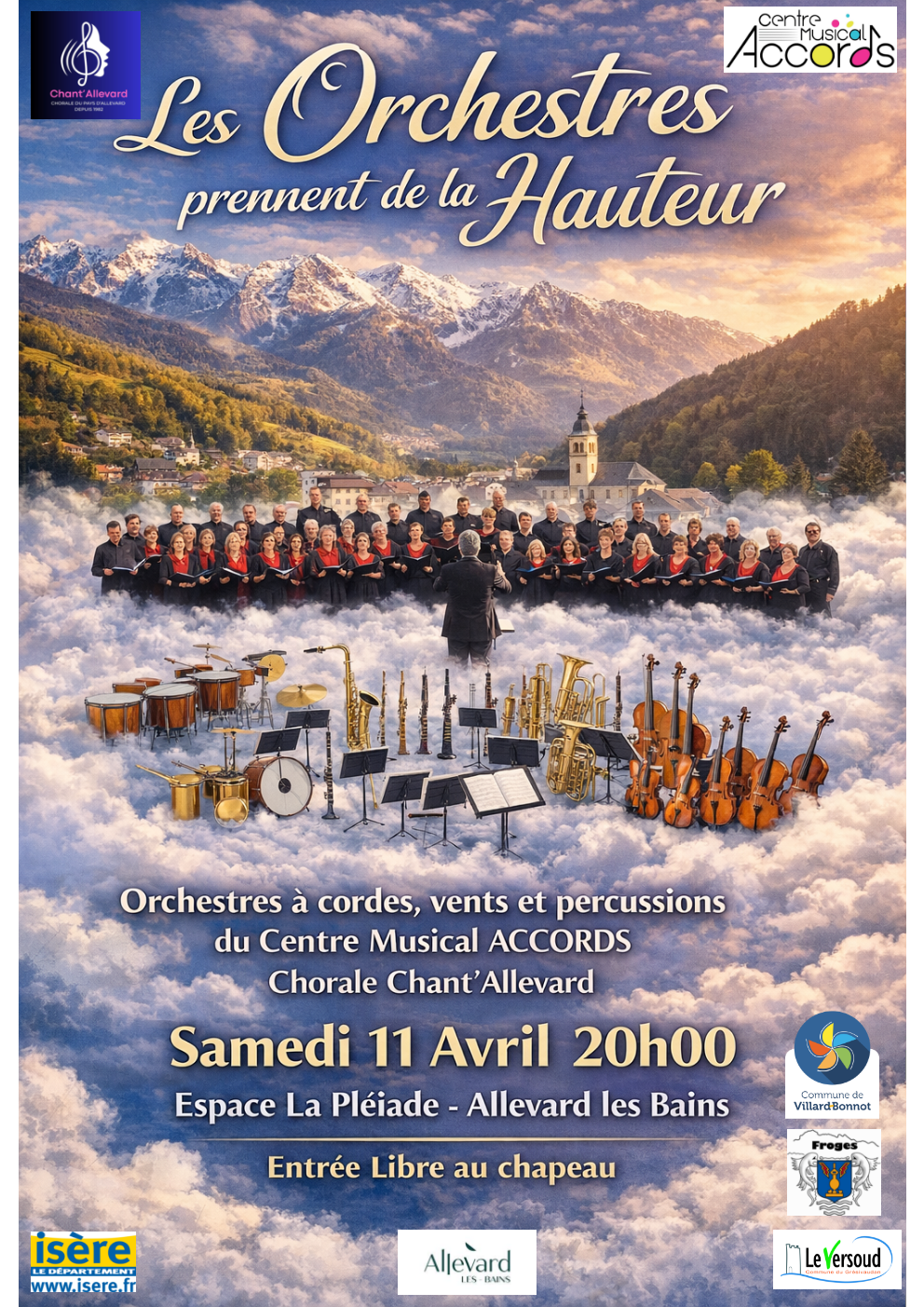 Chant’Allevard en concert avec l’école de musique Accords de Villarbonnot le samedi 11 avril à 20h à Allevard à la Pléïade.